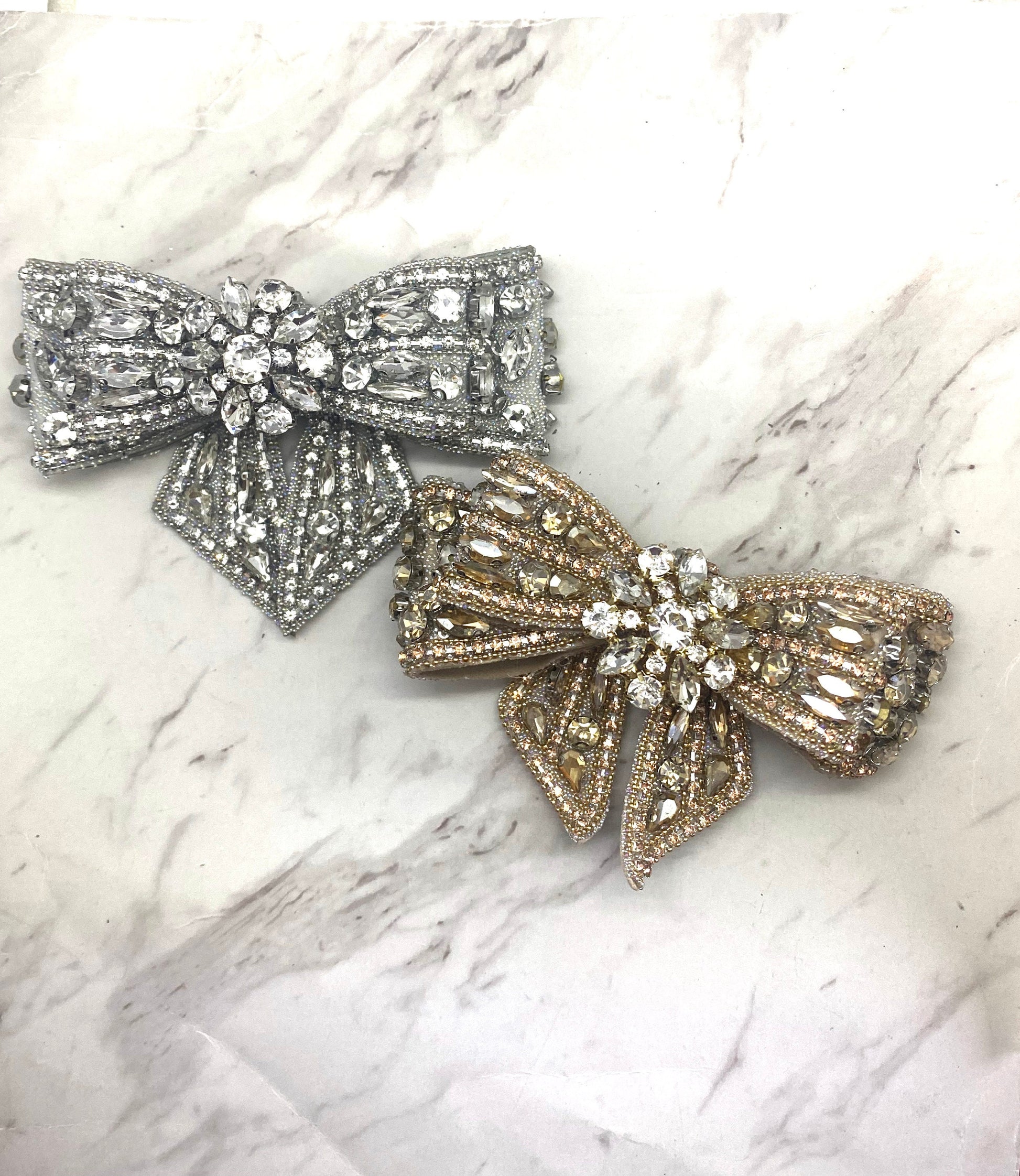Beaded Crystal Rhinestone Bowknot Shoe Clips Or Hair Clip (10cm x 7cm)