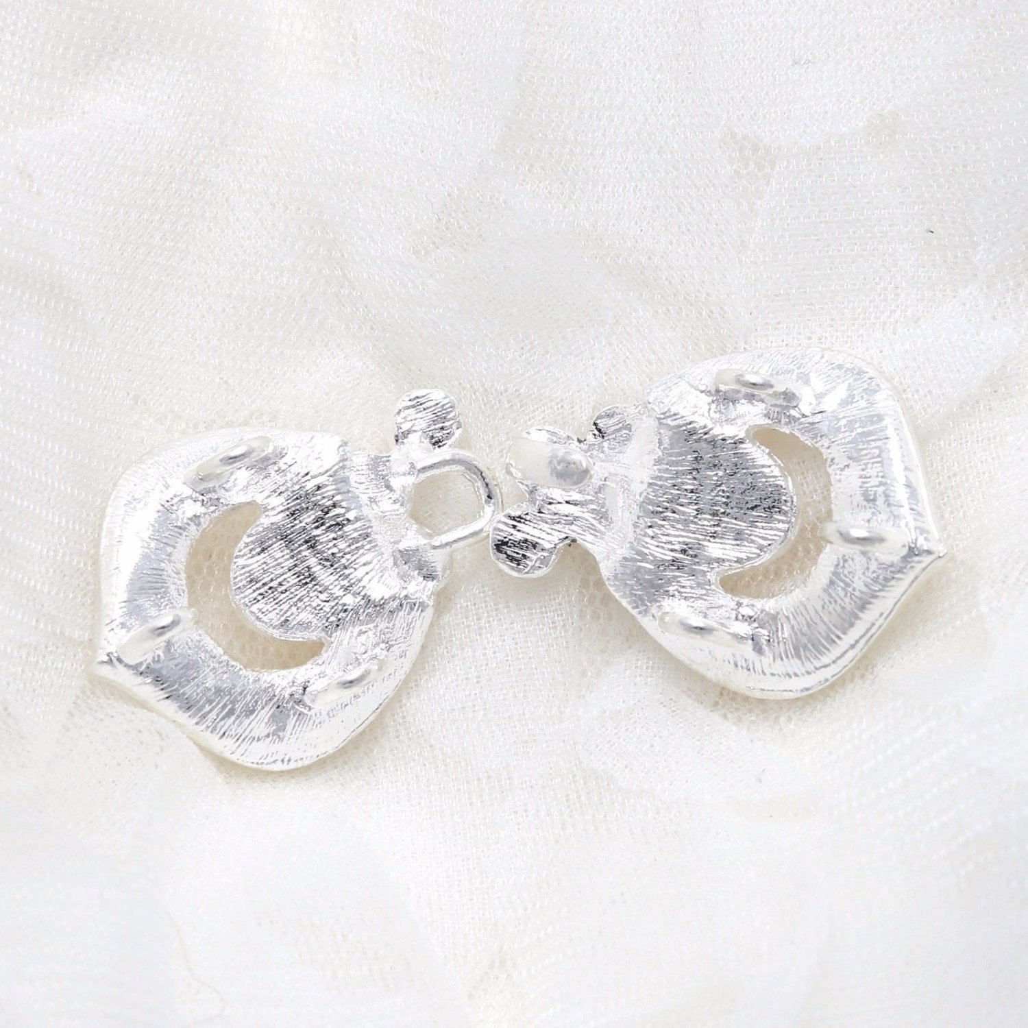 This multipurpose crystal hook and eye button buckle adornment can work for your DIY project. such as hair comb, sash applique, buckle, clutch, ring pillow, invitations, bouquets, pillow case. This gorgeous buckle clasp closure is made by Swarovski crystals and very sparkling. Best for your sewing project. Properties: clear rhinestone crystals Color: silver tone, clear crystals *brand new Shape: matching closure Dimension: approx.2.3" x 0.9", 5.9cm x 2.4cm -