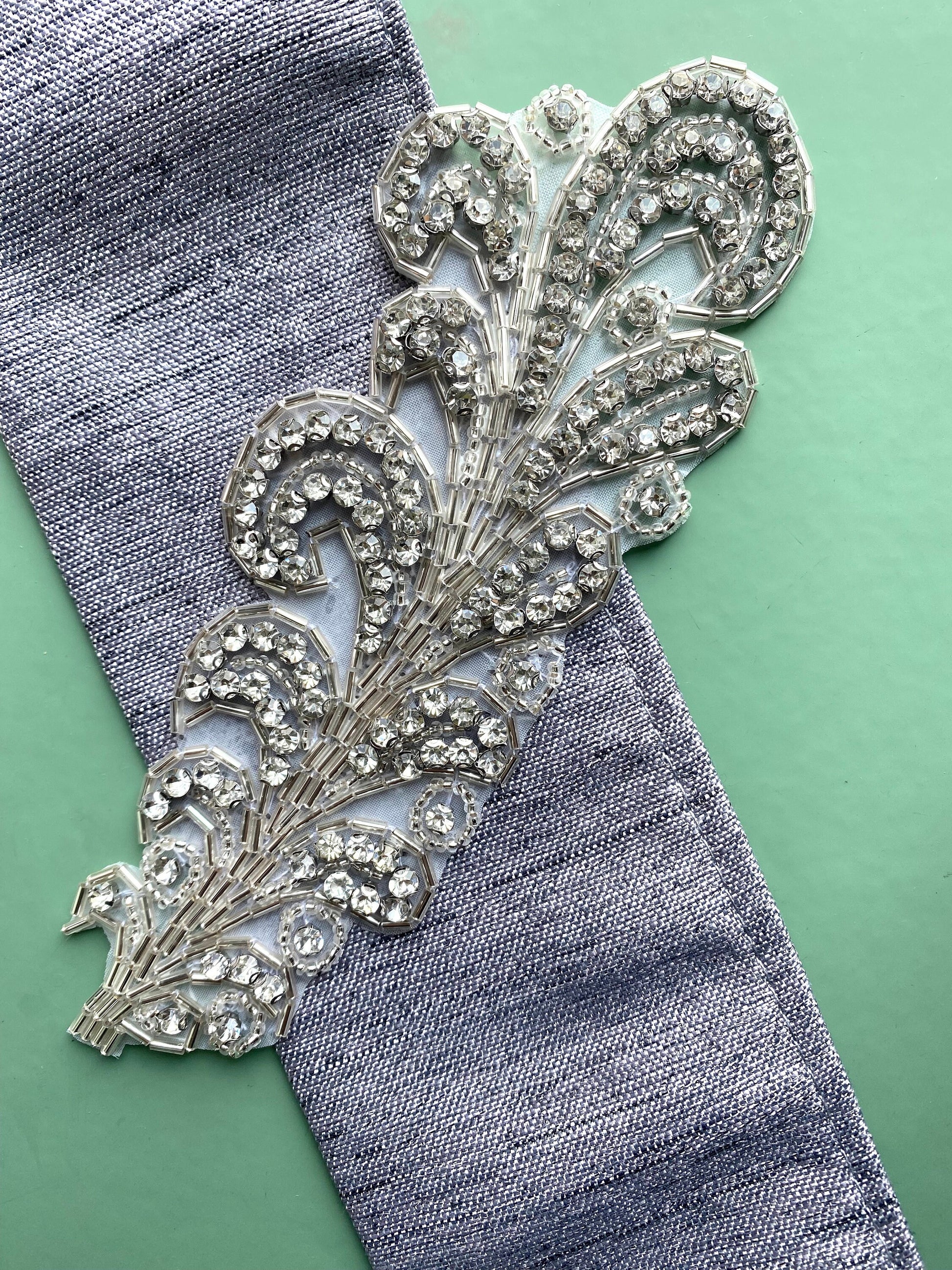 Its charm doesn't stop there. This versatile piece can adorn bouquet wraps, wedding invitations, and shoes, adding a touch of glamour to any detail. The rhinestone feather also shines in crafts, making it a delightful addition to clutch bags, scrapbook pages, and cake decorations.