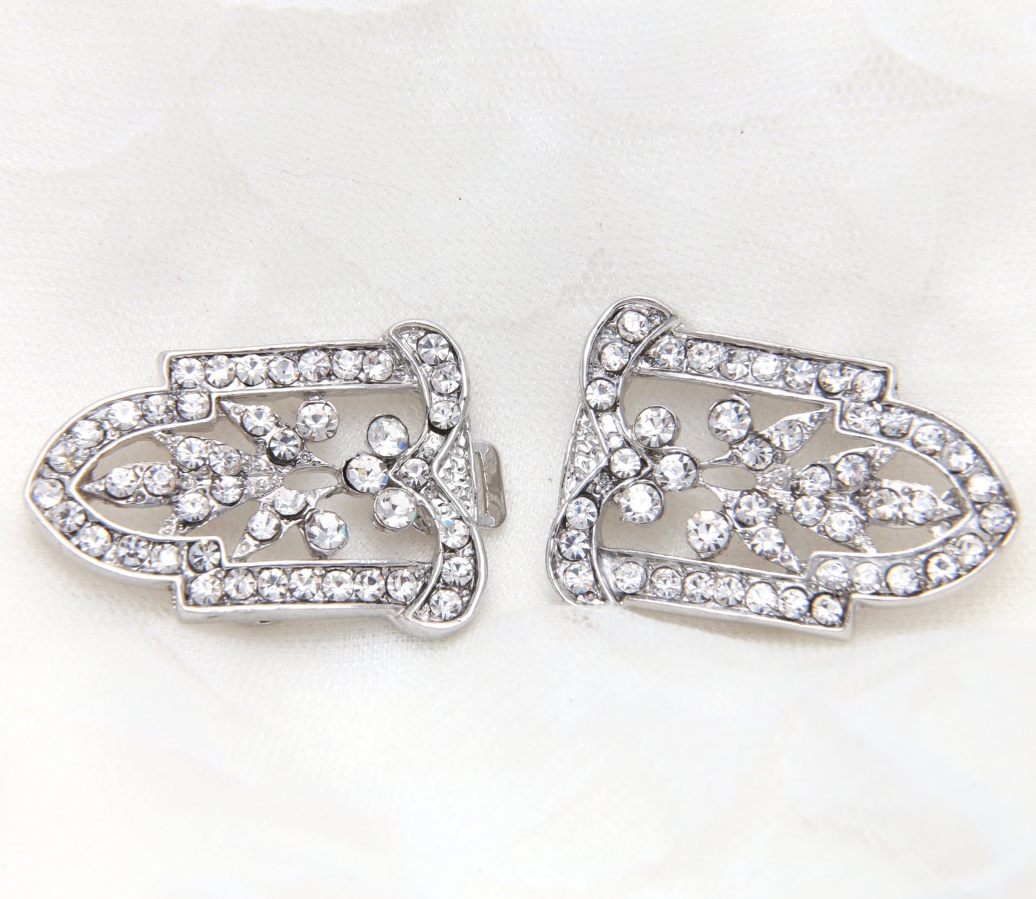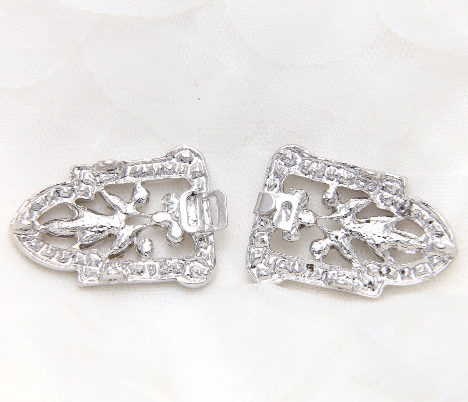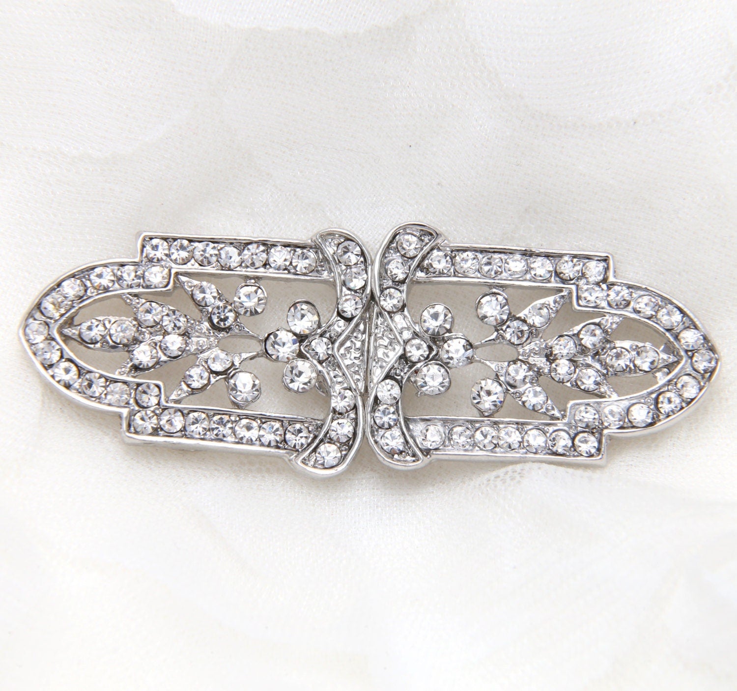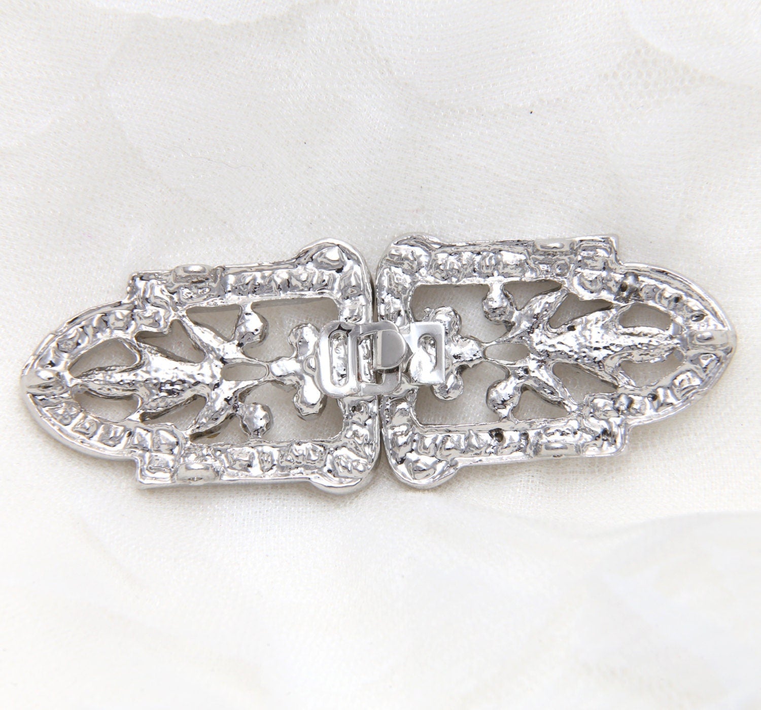 Rhinestone Crystal Buckle Clasp: Silver Tone Sash Belt Buckle (2.95" x 0.86")