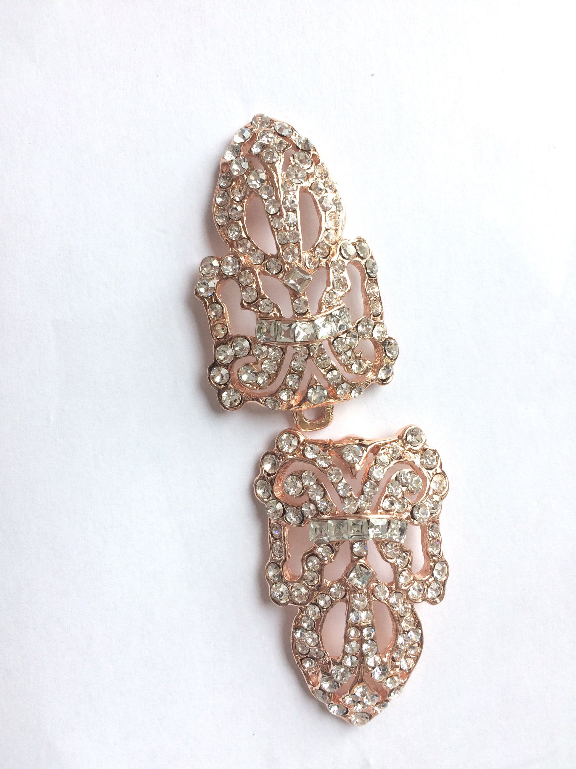 Rose Gold Rhinestone Button: Vintage Crystal Sash Hook And Eye Closure (3.74" x 1.3")
